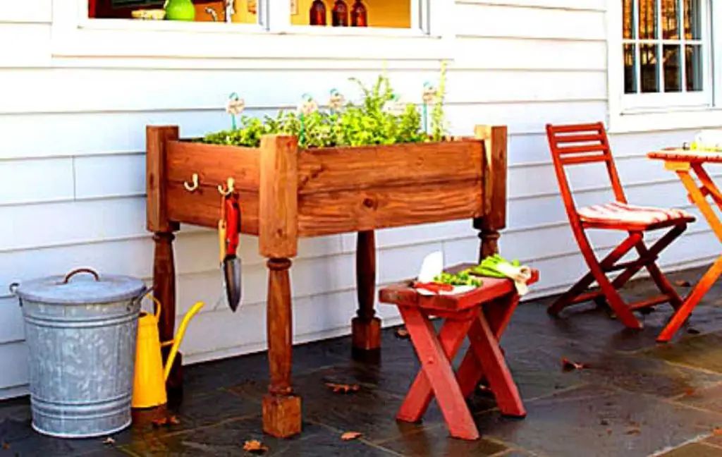 This elevated raised bed is very small and you can create a small garden or herb garden in it.